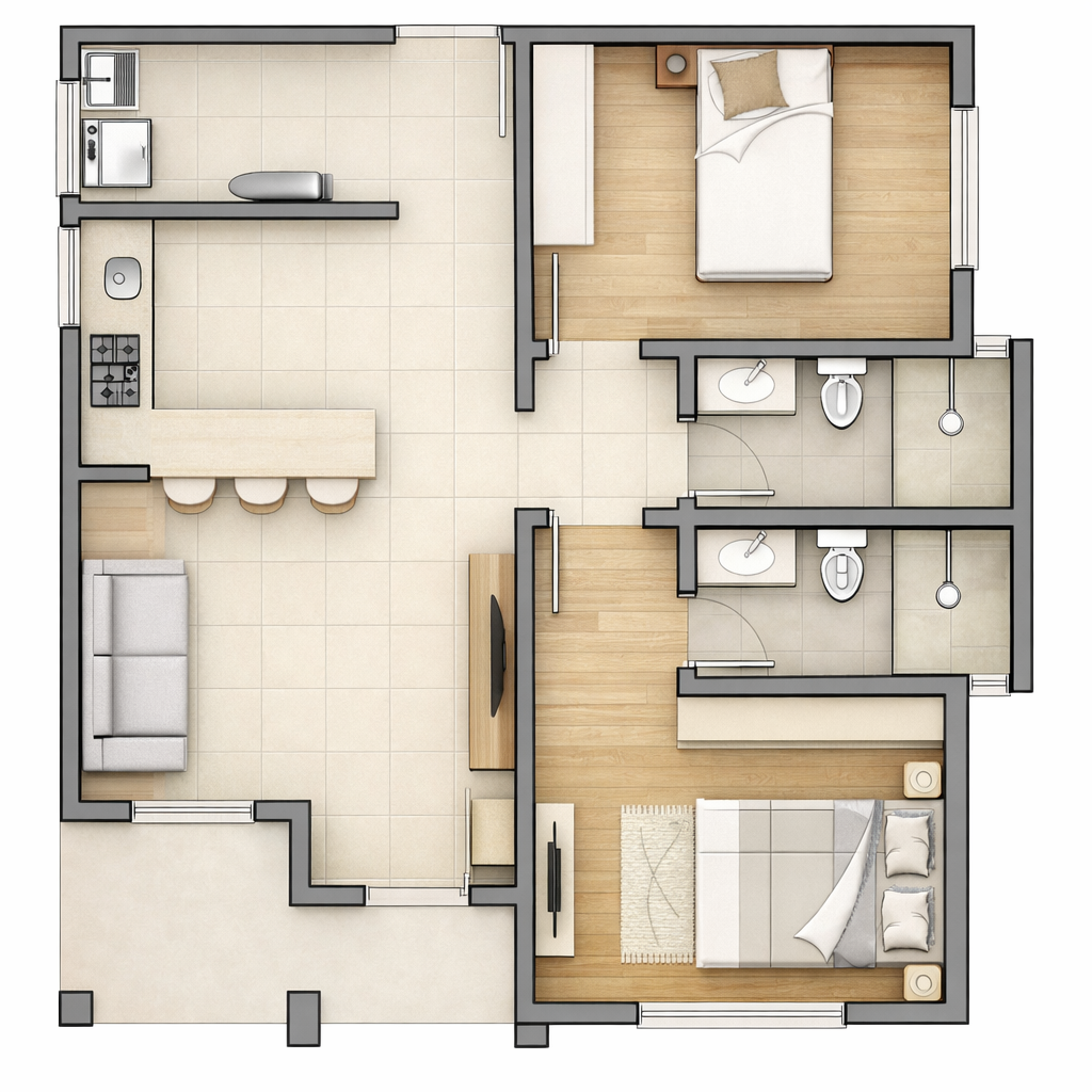 Um projeto compacto, elegante e pensado para proporcionar conforto em cada detalhe.