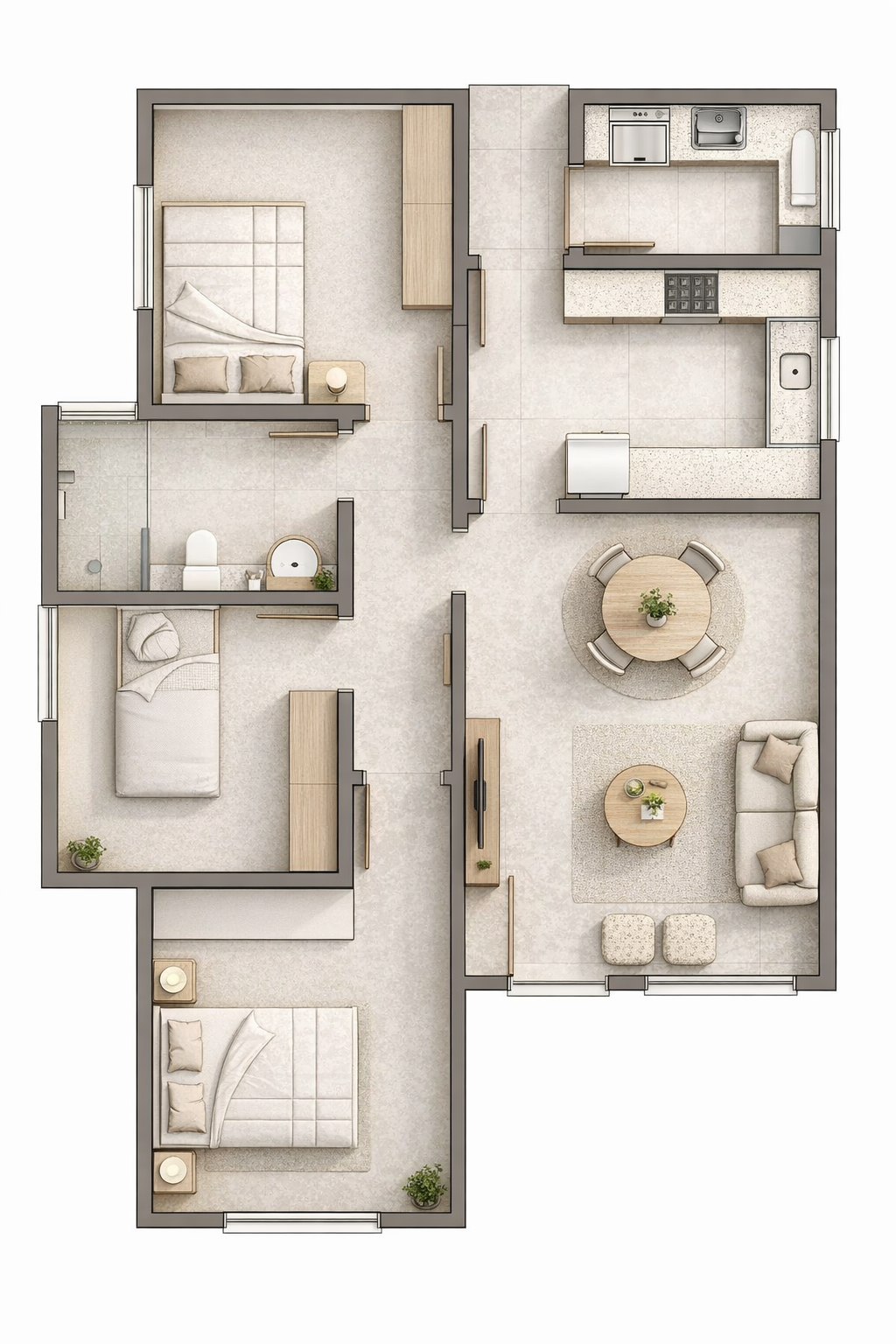 Um projeto compacto, mas surpreendentemente confortável, ideal para quem busca praticidade sem abrir mão do charme e da personalidade.