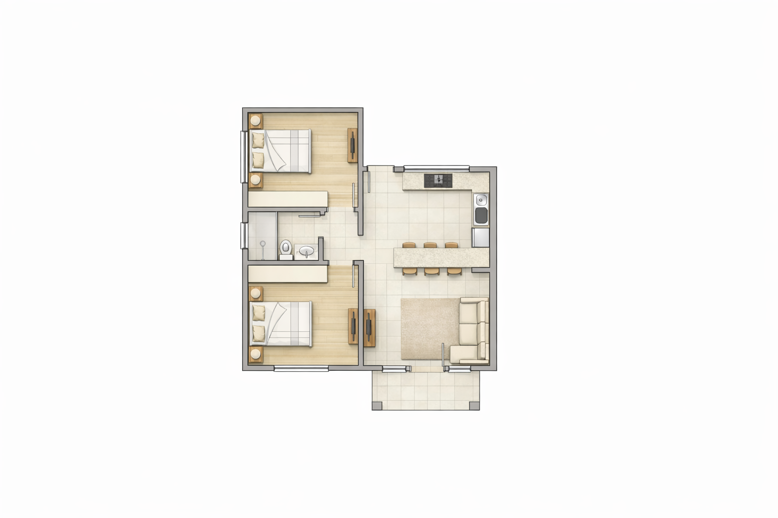 Com 64,74 m² muito bem distribuídos, este projeto foi pensado para quem deseja uma casa charmosa, funcional e acolhedora. Uma proposta que une simplicidade, conforto e elegância, perfeita para quem sonha em construir e viver bem.